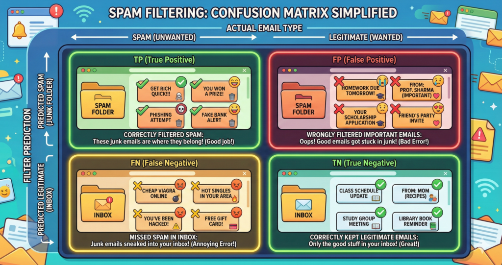 • Missed 10 spam emails (FN) ← Spam reached your inbox